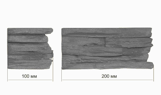 Размеры декоративных элементов Сланец :Длина - 100 мм / 200 мм.