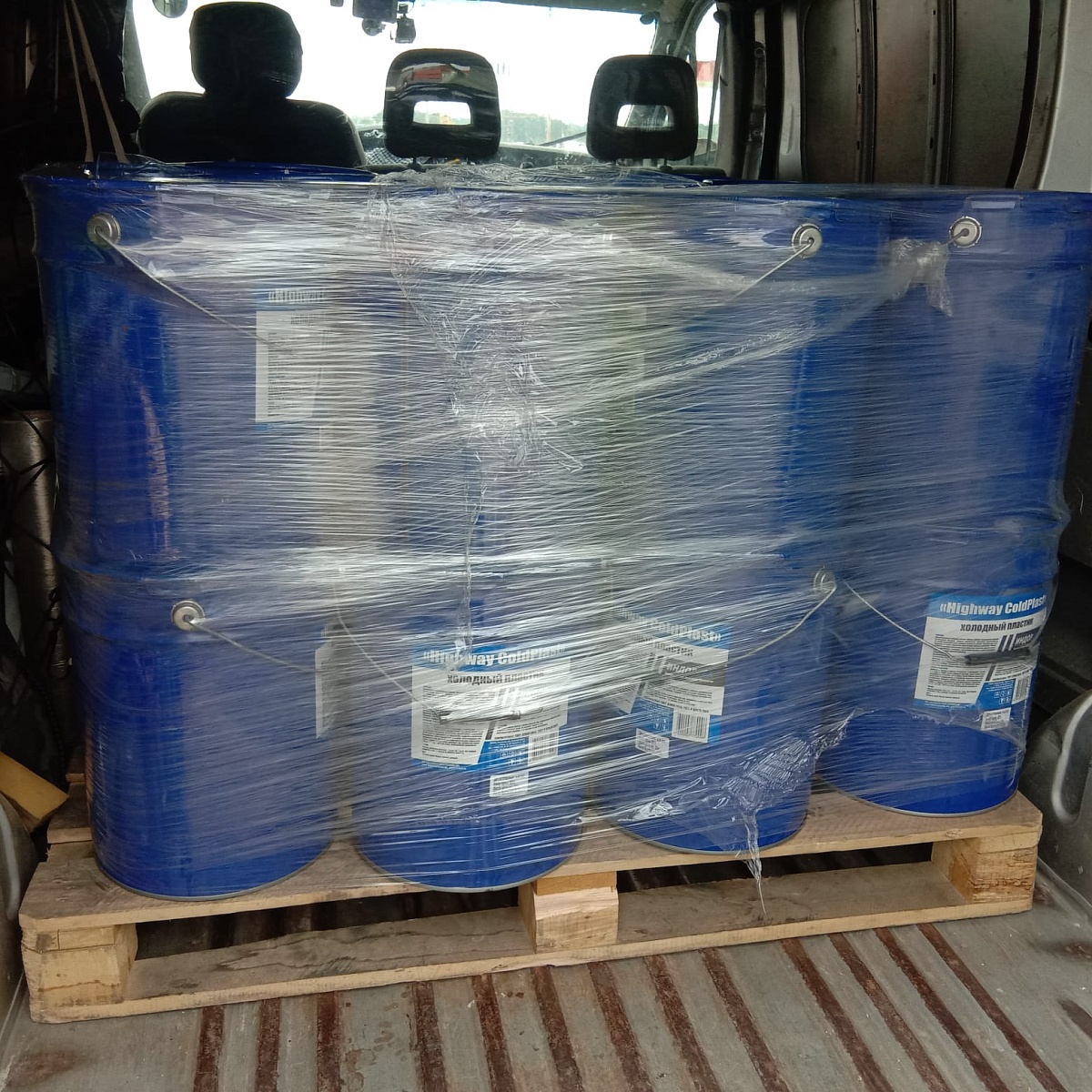 Холодный пластик Highway Cold Plast с отвердителем 1% предназначен для горизонтальной дорожной разметки на автомобильных трассах для систем 98 - 2, 100 - 2, 1 - 1, обустройства пешеходных переходов и "шумовых линий".