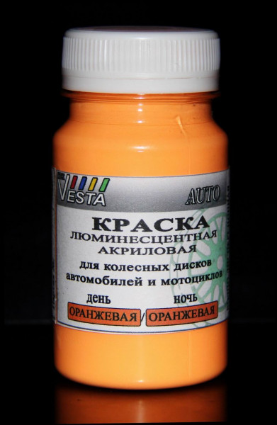 Краска люминесцентная для авто оранжевая / оранжевая (день/ночь) предназначена для тюнинга автомобильных, мотоциклетных дисков, покраске кузова или отдельных деталей автомобиля.