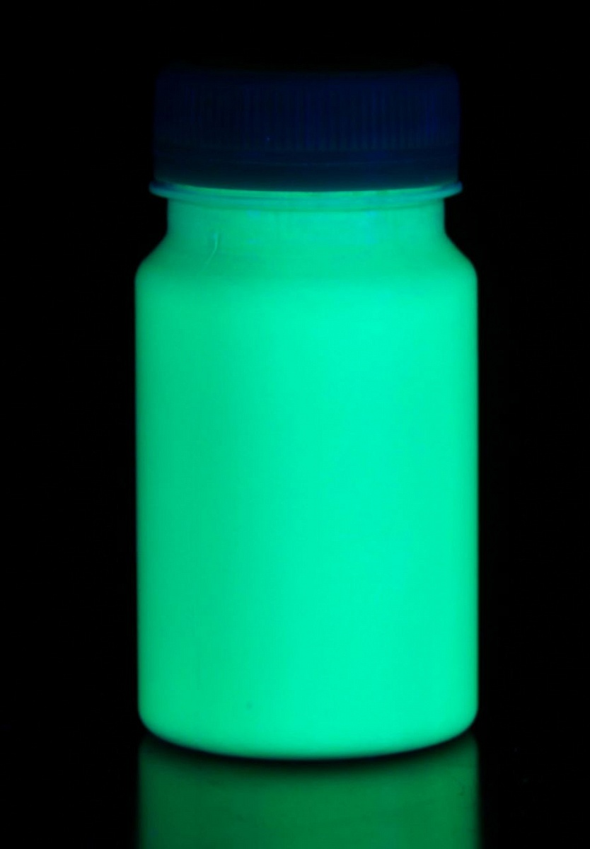 Обладает морозостойкостью, водостойкостью, способностью светиться в темноте до 10 часов без подзарядки. На свету поверхность, окрашенная люминесцентной краской, будет белого цвета, в темноте – "светящаяся"бирюзовая.