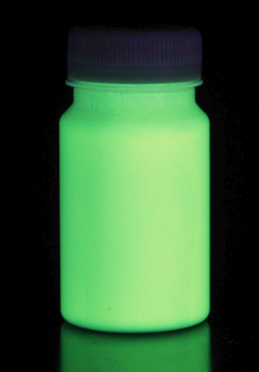 Обладает морозостойкостью, водостойкостью, способностью светиться в темноте до 10 часов без подзарядки. На свету поверхность, окрашенная люминесцентной краской, будет бесцветная, в темноте – "светящаяся" желто-зеленая.
