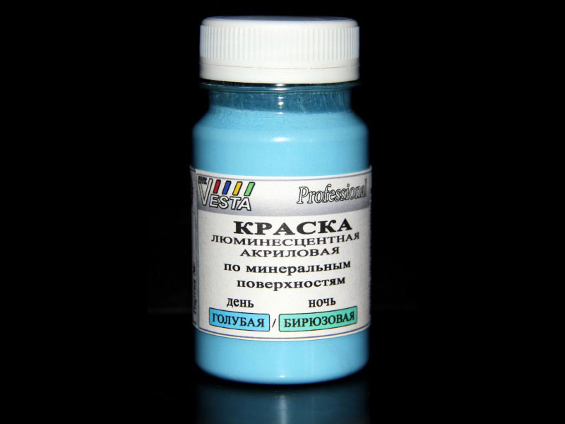 Краска люминесцентная по минеральным поверхностям голубая/ бирюзовая (день / ночь) оптимальна для работ по камню, бетону, кирпичу и другим пористым материалам.