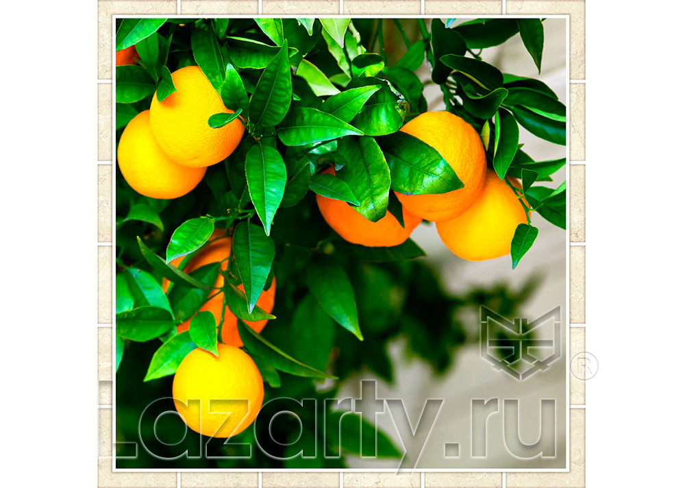 Защитное стекло Апельсиновое дерево представлено в двух размерах: 90х60 и 60х60 см. Яркое изображение цитрусов актуально для оформления стен кухни. Благодаря термостойкости закаленного стекла его можно монтировать рядом с газплитой, варочной панелью, камином.
