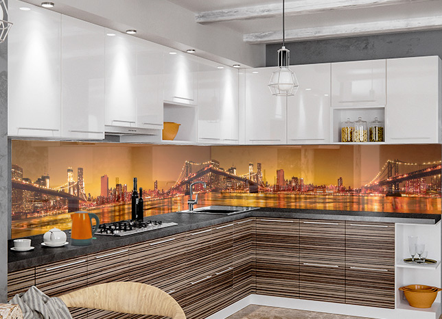 Оплата картой онлайн переводШикарный закат в Нью-Йорке изображен на фартуке МДФ Городской пейзаж 4. Он выполнен по технологии Альбико.