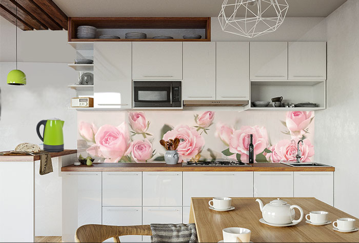 Розовое безумство королевы цветов на стенах кухни - это новый матовый фартук М 01 из МДФ для кухни. Великолепные розы как магниты притягивают взгляды и создают романтичное настроение для приготовления ужина на двоих в домашней обстановке.