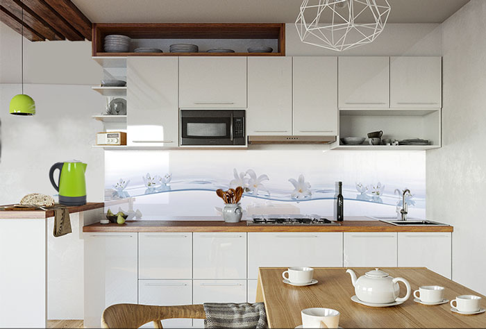 Фартук для кухни из МДФ M 025 с нежными белыми лилиями на белом фоне - еще одна новинка от дизайнеров Альбико. Плавные линии и светлые оттенки станут прекрасным контрастным фоном для темной мебели. Созданный на основе натуральных материалов (прессованной древесной стружки) фартук МДФ экологически безопасен для эксплуатации. Он великолепно справляется с защитой поверхностей и дополнительно украшает интерьер комнаты.