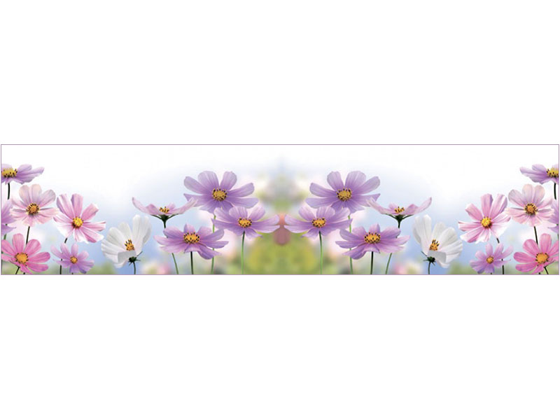 Оплата картой онлайн переводНежный фартук МДФ Полевые цветы с изображением розовых и сиреневых цветов выполнен по технологии Альбико.
