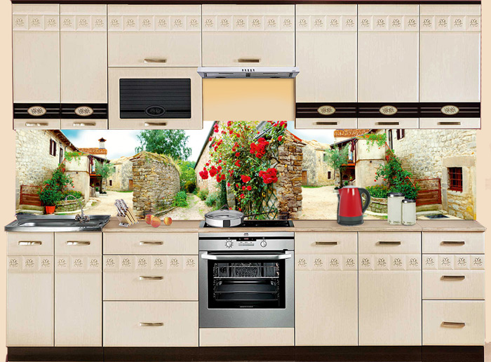 Красочный фартук МДФ Серии Лайт S9 с изображением сельских улочек и цветущими красными розами - лучший способ украсить интерьер и поднять себе настроение. Летний городской пейзаж панели создает перспективу, чем ломает плоскую геометрию пространства. К тому же это отличная защита стен от влаги и загрязнений.