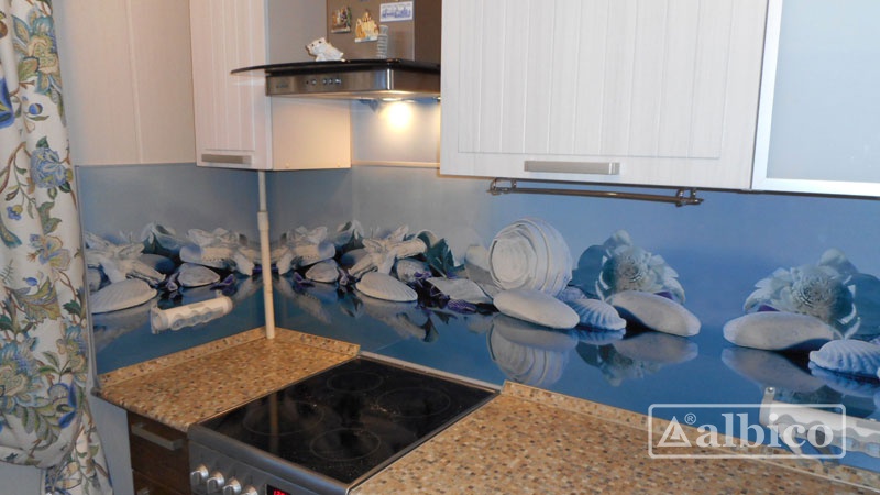 Красочный фартук МДФ SP 027 с белыми ракушками на голубом фоне - прекрасное украшение и защита стен кухни или гостиной. Романтичная морская композиция добавляет глубины и изменяет геометрию пространства. Яркий рисунок МДФ панели предполагает однотонную мебель спокойных оттенков. Прозрачный глянцевый слой защитит поверхности от брызг и загрязнений.