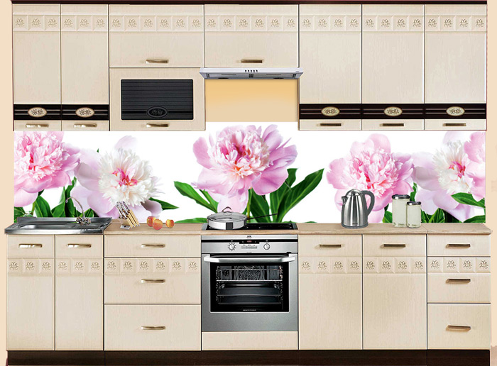 Эффектный фартук МДФ Пионы с нежными розовыми цветами - достойное украшение и защита стен кухни или гостиной. Нежная флористическая композиция станет главным декоративным элементом интерьера. Светлые однотонные поверхности мебели оттеняют яркую стеновую МДФ-панель SP 142. Ее можно установить на кухне, в холлах гостиниц, залах кафе, ресторанов, салонах красоты. Глянцевый красочный слой надежно защищает поверхности от брызг, влаги и загрязнений.