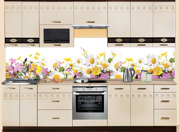Светлый фартук МДФ SP 188 с ромашками и другими полевыми цветами - великолепный способ украсить интерьер кухни или гостиной. Летний цветочный натюрморт добавляет солнечного настроения в атмосферу дома или кафе, привлекает взгляды. Надежный глянцевый слой МДФ имитирует стекло и превосходно оберегает поверхности от влаги, загрязнений и выгорания на солнце.