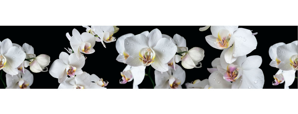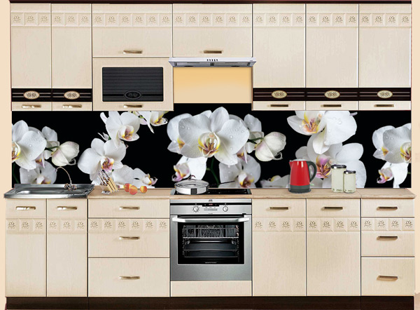 Черный фартук МДФ SP 194 с белыми орхидеями - лучший декоративный элемент в интерьере кухни или гостиной. Резкий контраст цветов и рисунков добавляет яркости композиции. Живописная МДФ панель будет уместна на стенах кухни, кафе или гостиной. Высокий глянцевый слой МДФ-фартука имитирует стеклянную поверхность и превосходно оберегает стены от влаги, загрязнений и выгорания на солнце.