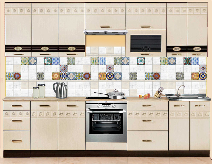 Красочный фартук МДФ Мозаика цветная 2, имитирующий керамическую плитку, с абсолютно ровной поверхностью на ощупь, выглядит современно и реалистично. Геометрический рисунок панели в светлой гамме гармонирует с любыми натуральными оттенками мебели и стен. Верхний слой добавляет реалистичности благодаря матовой поверхности и отсутствию сильного блеска. Тем не менее он надежно защищает стены от брызг, влаги и загрязнений.