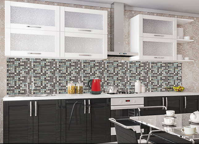 Колоритный фартук МДФ Мозаика темная, имитирующий керамическую мозаику, выглядит очень реалистично в интерьере. Геометрический рисунок панели в темно-коричневой гамме гармонирует с любыми натуральными оттенками. Верхний слой добавляет реалистичности благодаря матовой поверхности и отсутствию сильного блеска. Тем не менее он надежно защищает стены от брызг, влаги и загрязнений.