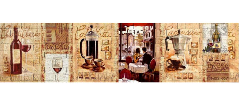Оплата картой онлайн переводВинтажный фартук МДФ Рандеву с тиснением под кирпич - превосходная вывеска и внутренняя декоративная панель для кафе, булочной или пиццерии. Рисунки ароматного кофе или красного вина пробуждают желание попробовать французскую или итальянскую кухню. Композиция влюбленной парочки добавляет романтики в атмосферу помещения.