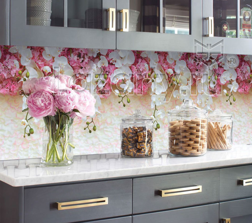 Оплата картой онлайн переводВолна цветов захлестнет кухню при выборе фартука Нежность из АБС пластика. Ниспадающие гирлянды белых орхидей в сочетании с розовыми мелкими цветами образуют волшебную флористическую композицию. Живописный натюрморт панели плюс яркие цвета завораживают и поднимают настроение во время приготовления пищи.