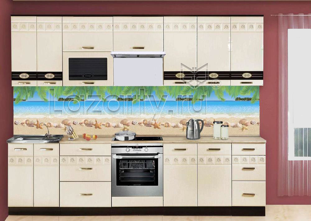 Оплата картой онлайн переводКартинка тропического рая на фартуке из абс пластика Острова - это как раз то, что нужно иметь на кухне жителям России с суровым климатом. Изображение морского берега с теплым белым песком будет согревать вас зимними вечерами и зрительно "раздвигать" стены комнаты за счет перспективы. На такой кухне как нельзя лучше получаются экзотические коктейли и рыбные блюда.