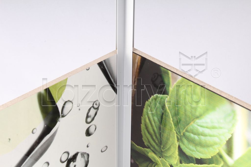 Универсальный угол для МДФ-фартуков толщиной 4 мм и длиной 60 см устанавливается в угол стен. В специальные пазы толщиной 4 мм вставляются полотна фартуков.