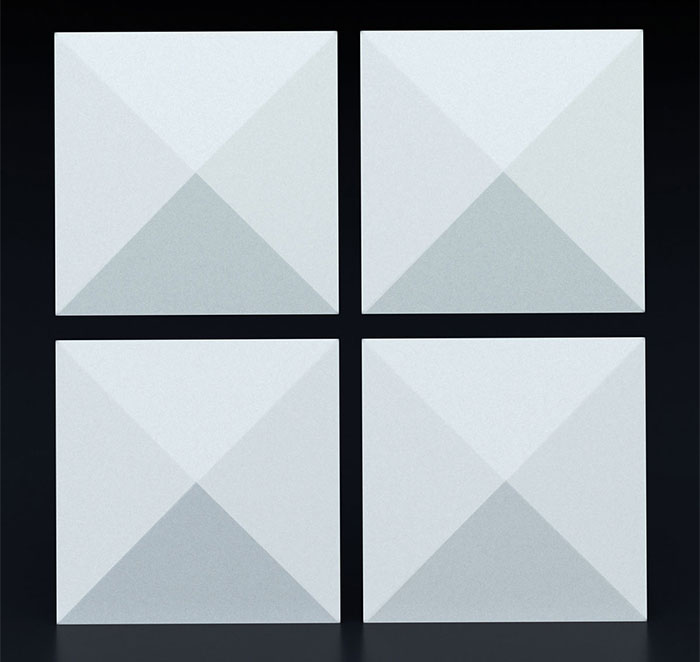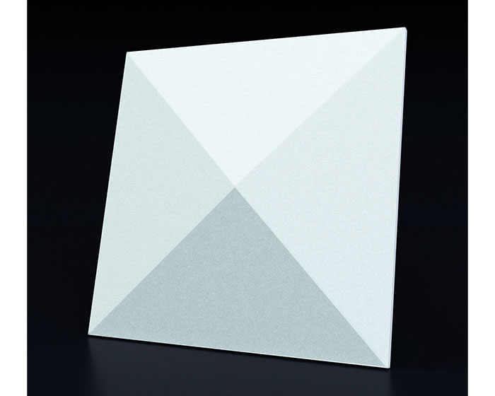 Гипсовые 3D панели Пирамидка с интересным геометрическим рельефом - прекрасный вариант для декорирования стен. Небольшой объем гипсовых модулей создает графичный рисунок светотени на стенах помещения. Универсальный размер плитки 50х50 см упрощает монтаж и доставку большого количества модулей.