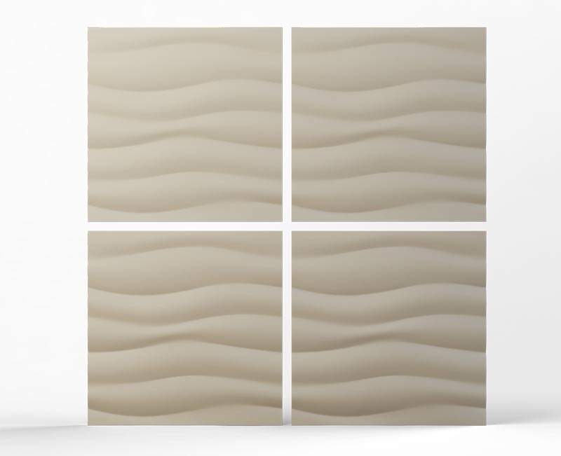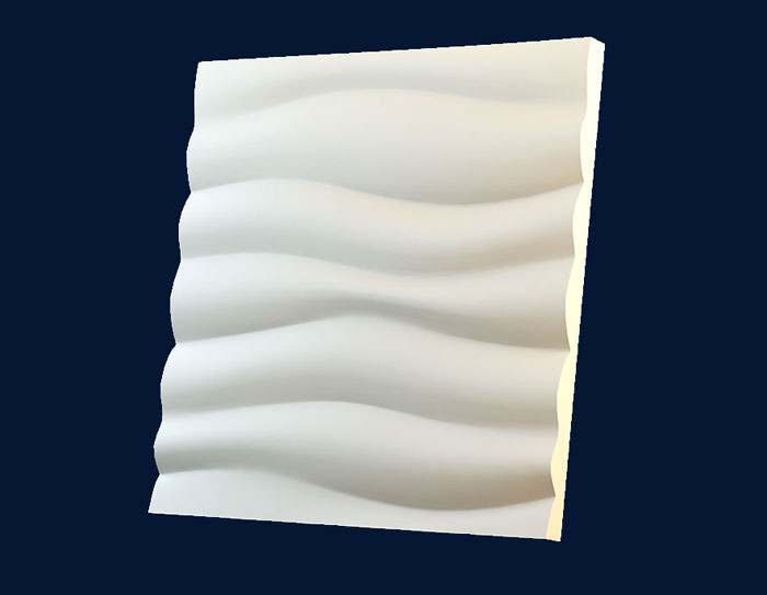 Декоративные стеновые панели 3d с волнами произведены в виде квадратной плитки размером 500x500 мм с объемным волнистым рельефом.