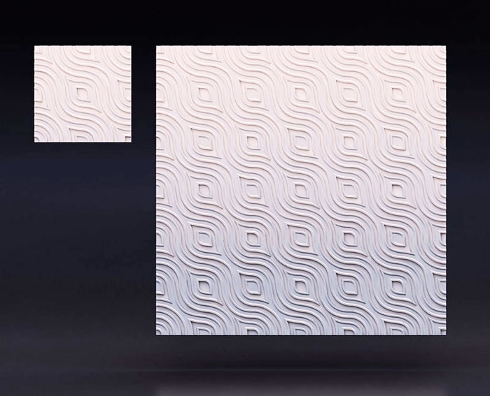 Чаще всего панели произведены в виде квадратной плитки размером 500х500 мм, 600х600 мм с объемным рельефом. Бывают коллекции с нестандартной маленькой плиткой, а также серии с изображенной композицией на всю стену длиной до 3 м.