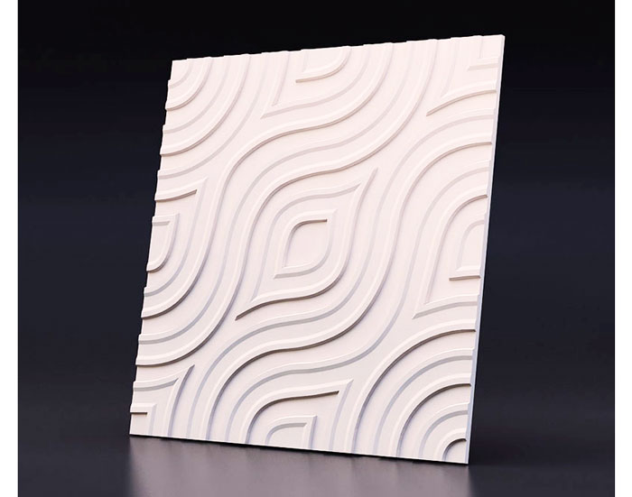 Гипсовые 3D панели Взгляд – это универсальный отделочный материал с абстрактным рисунком на основе гипса. Диагональные волны и очертания глаз создают необычный интерьер, зрительно расширяют стены помещения.