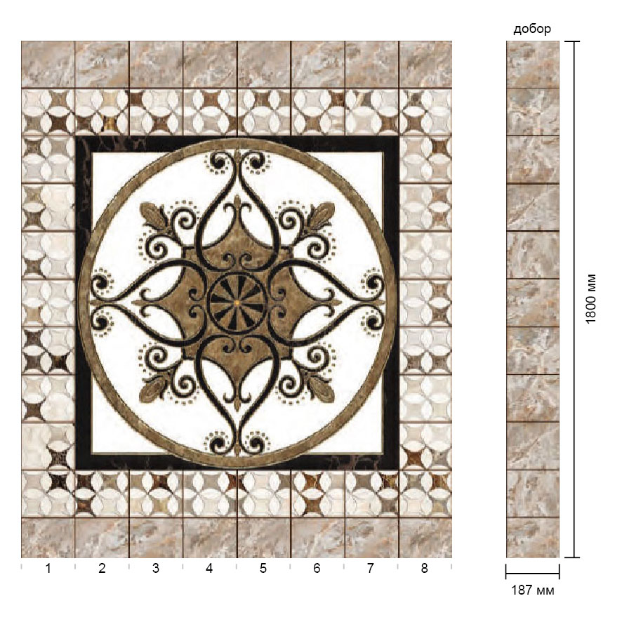 Комплекты 3д полов формируются из 8 панелей или из 11 панелей. При нехватке элементов пола можно докупить доборы, которые имеют такое же дизайнерское оформление, как и весь комплект.