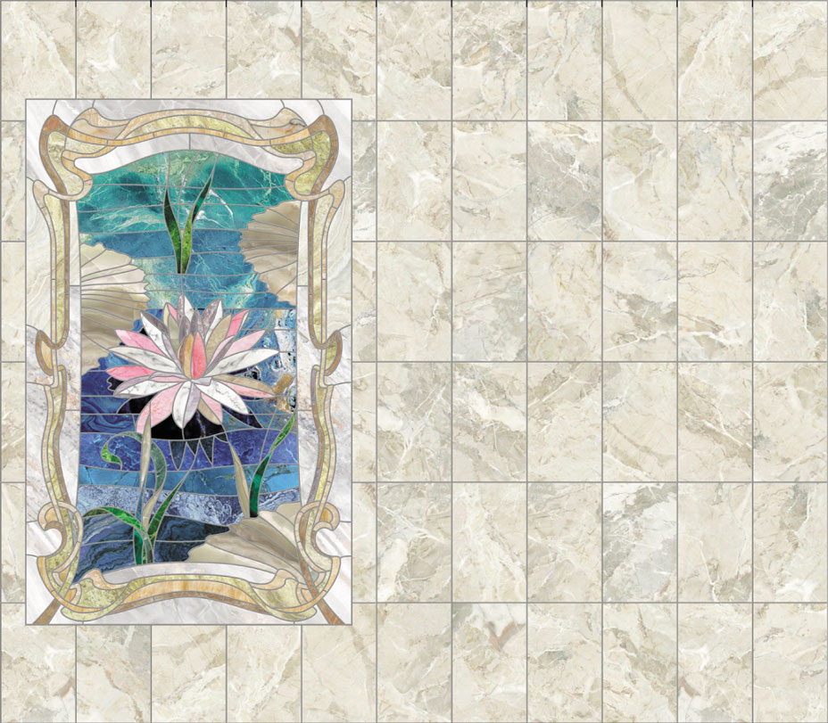 Оплата картой онлайн переводВлагостойкий 3Д пол Мраморный Лотос Новита имитирует рисунок структуры мрамора. Центр комплекта украшает композиция, выполненная в технике витража, с чудесным раскрывшимся цветком лотоса на изумрудной воде.
