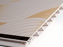 Панели ПВХ 20-A-3 (2.7 м) от французского производителя Sarl Makindustri TDS с волнистым вертикальным узором и золотистой кромкой хорошо известны благодаря высокому качеству продукции. По жесткости и прочности пластика они составят конкуренцию любому известному и раскрученному бренду. В каталоге присутствует разнообразная линейка размеров. Производители выпустили панели различной высоты и ширины, не ограничиваясь стандартным размером 250х2700 мм. В каталоге присутствуют ламели высотой 2,7 м, 2,95 м и 3 м. В зависимости от дизайна и размеров помещения можно выбрать ПВХ шириной 15, 16, 20 и 25 см.