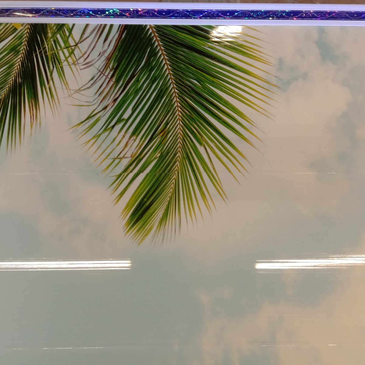 Плинтус потолочный Лоза синяя с голографическим контрастным рисунком предназначен для панелей ПВХ 7-9 мм.