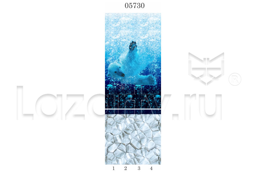 Оплата картой онлайн переводПанель ПВХ Панда Атлантика рисунок 2 состоит из четырех ламелей и продаётся комплектом. В центре - изображение белого медведя под глубинами северных вод, снизу панелей - имитация кусков льда.