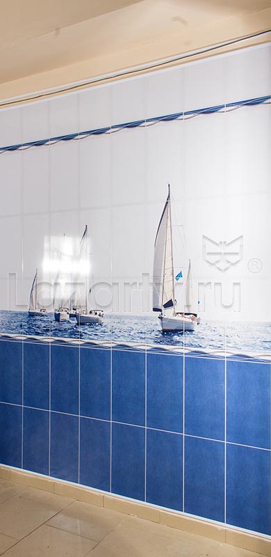 Оплата картой онлайн переводРисунок 2 панелей ПВХ Панда Морской бриз состоит из четырех ламелей, на которых изображен плывущий белый парусник. Вся коллекция имитирует кладку из керамической плитки и поддерживает морскую тематику. Нижняя часть панелей имеет ярко-синий цвет и украшена бордюром, напоминающим морскую пену волн. Рисунок продается комплектом.