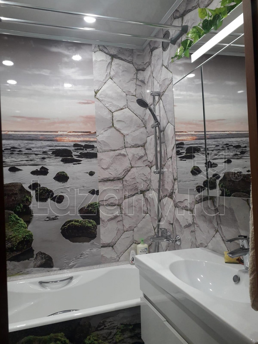 Живописный пейзаж каменистого берега во всю стену станет отличным украшением интерьера и создаст расслабляющую атмосферу.
