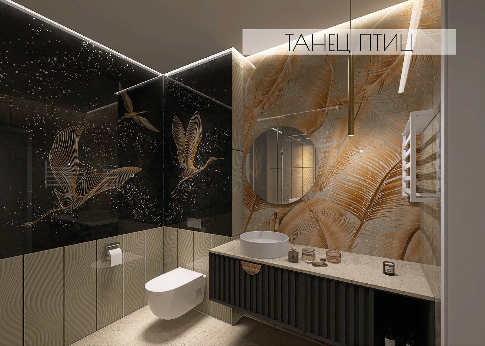 Панель ПВХ Панда Танец птиц (узор Перо) состоит из 4-х панелей.