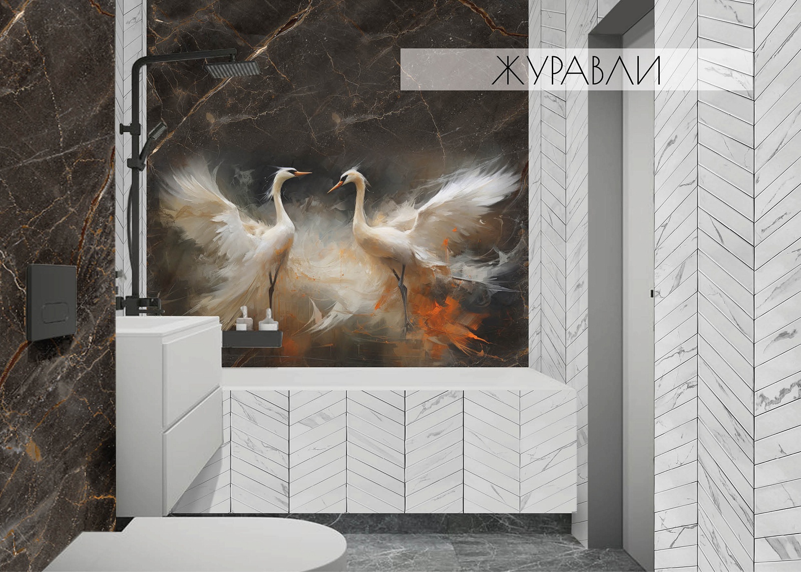 Панель ПВХ Панда Журавли (добор blanco)