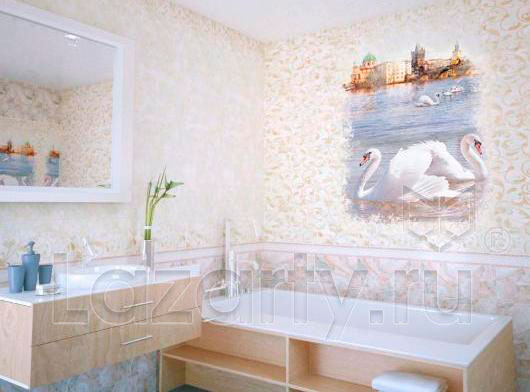 Прекрасная коллекция настенного покрытия, где на основном панно располагаются грациозные лебеди на фоне старого города - отличный вариант для оформления интерьера кухни, ванной, лоджии, общественных помещений.