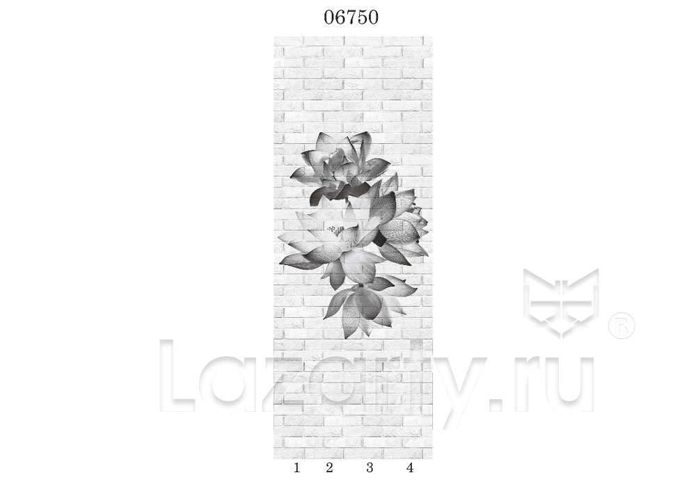 Оплата картой онлайн переводРисунок 1 панелей ПВХ Панда монохромной коллекции Цветочные узоры – это комплект из 4х ламелей с изображением цветов на фоне белой кирпичной стены.