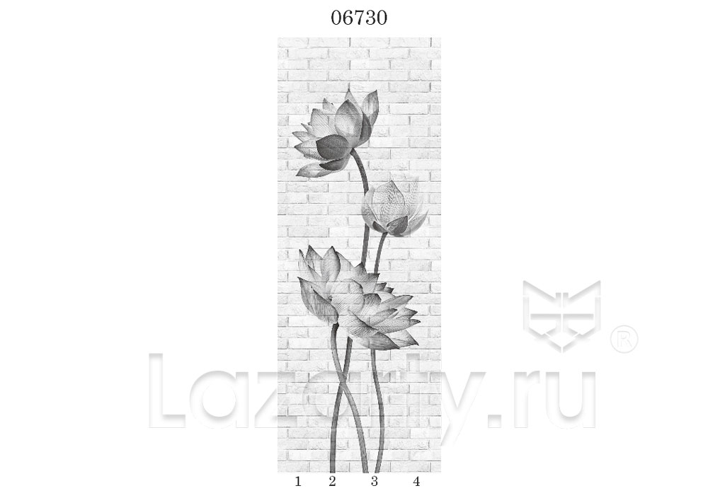 Оплата картой онлайн переводРисунок 3 панелей ПВХ Панда монохромной коллекции Цветочные узоры – это комплект из 4х ламелей с изображением цветов на фоне белой кирпичной стены.