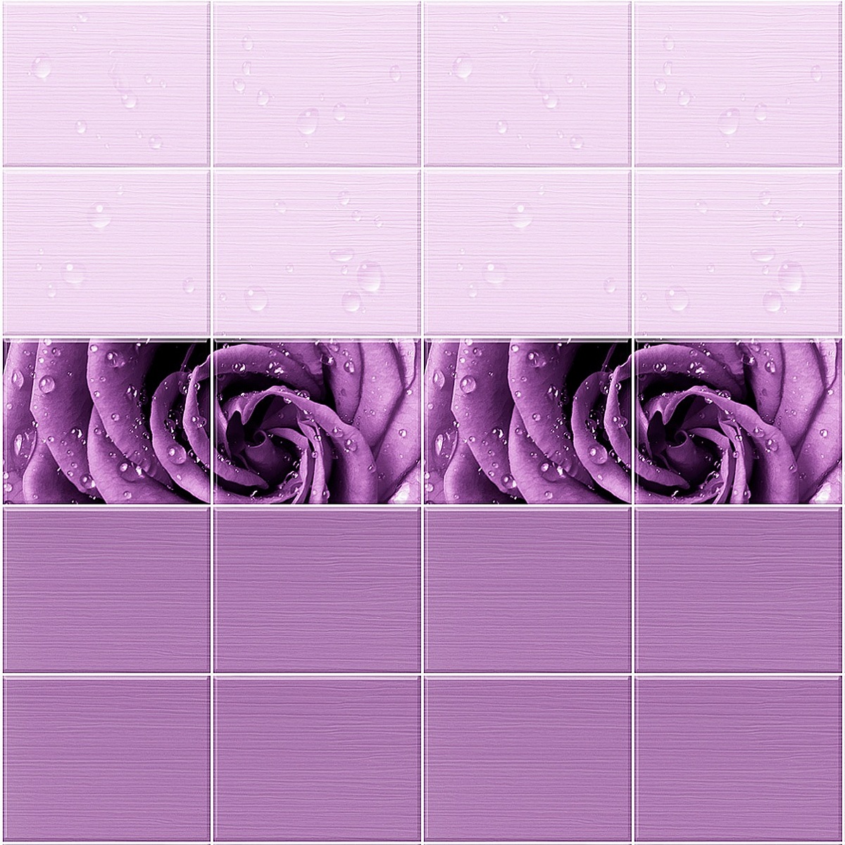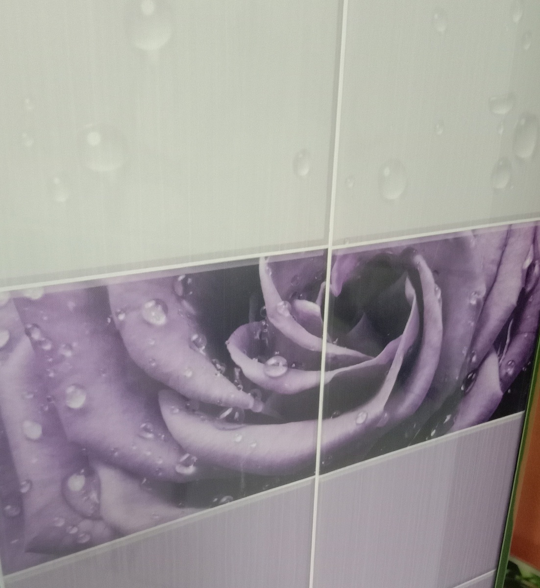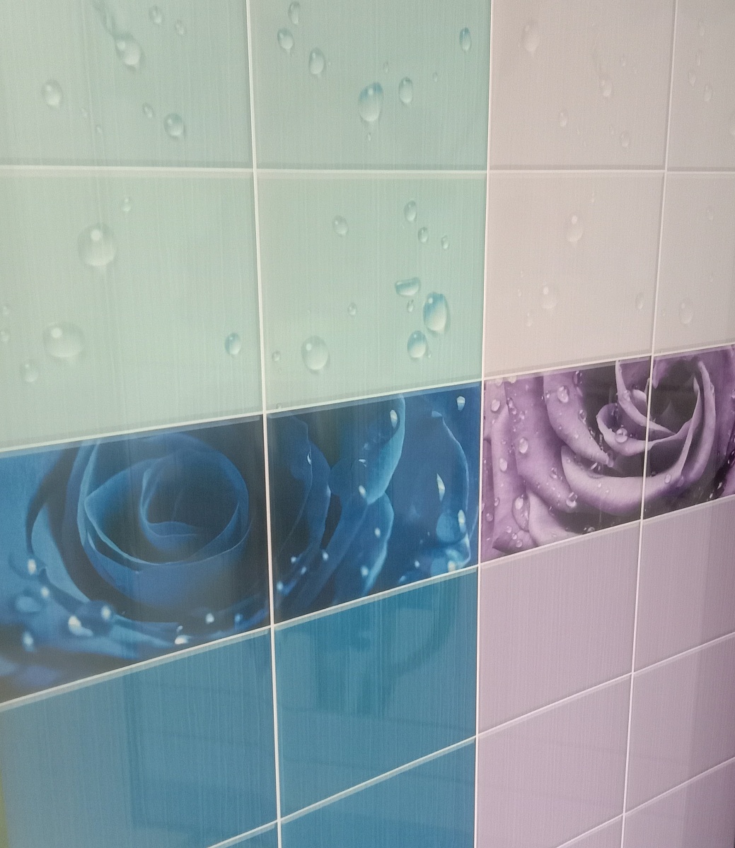 Панели ПВХ Капли росы фиолетовый продаются комплектом, состоящим из двух панелей, формирующих целый узор. Поверхность покрыта тремя слоями высоко - глянцевого лака, что придаёт панелям шик и создаёт глубину пространства. Изображение точное и качественное. Используются в помещениях с любой влажностью.