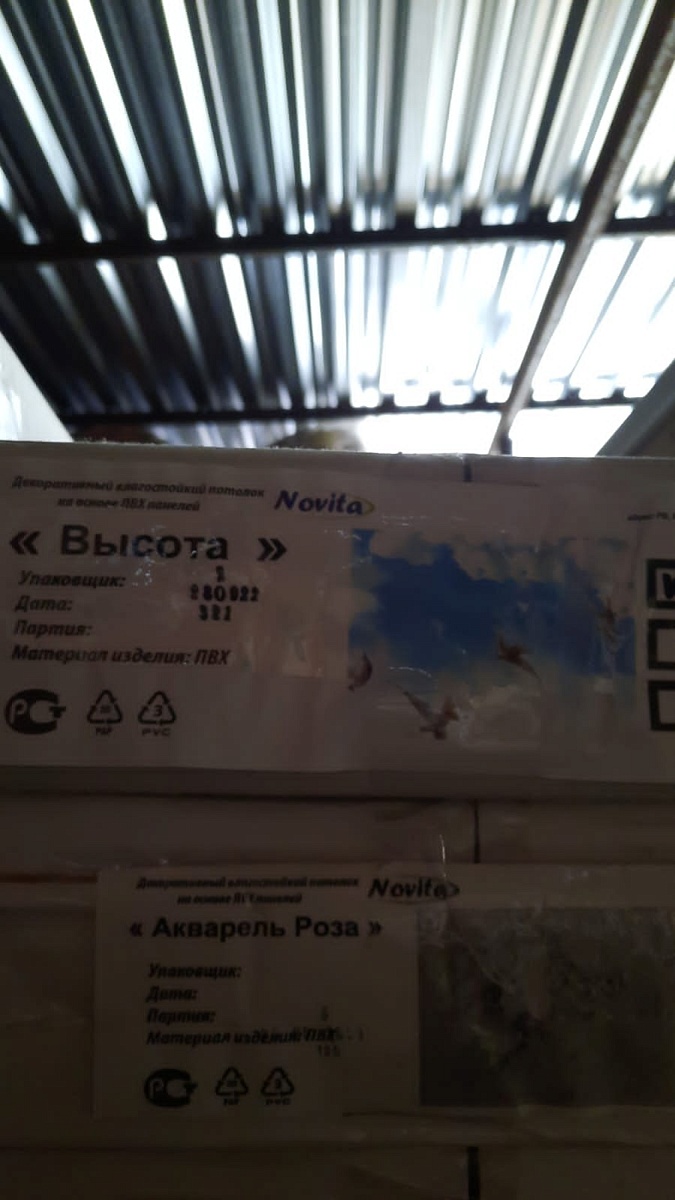 Потолочная панель ПВХ Novita Акварель роза представляет собой комплект из узких панелей шириной 250 мм. Длинные (2 и 2,5-метровые) потолки состоят из 8-ми панелей, а короткий (1,8 метра) из 6 панелей.