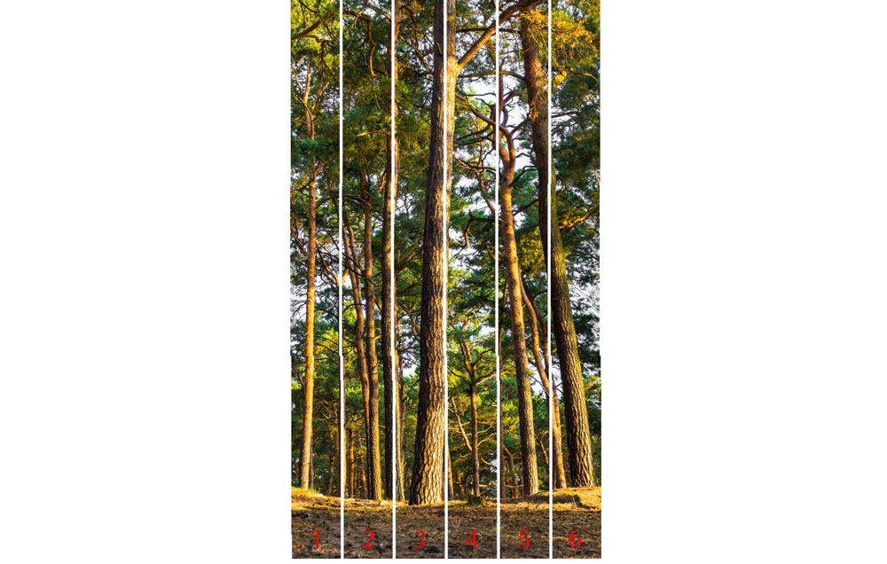 Интерьерные панели ПВХ Venta Exclusive Сосновый лес - это великолепный летний пейзаж. Изображение соснового бора выглядит очень реалистично благодаря рисунку снизу доверху и высокому качеству цифровой печати. Коллекция состоит из шести ламелей и продается комплектом.