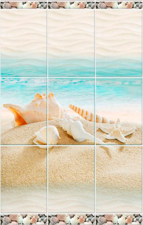 Оплата картой онлайн переводПанель ПВХ Novita Романтика light (узор 2) - это чудесный пейзаж с морскими звездами и ракушками. Он состоит из трех ламелей толщиной 8 мм и продается комплектом. По низу панели - рельефное изображение песчаного пляжа и кусочек голубого моря. Вся коллекция имитирует поверхность рельефной керамической плитки с характерными стыками. В коллекции предусмотрено еще два рисунка и добор, позволяющие оформить стены большого помещения.