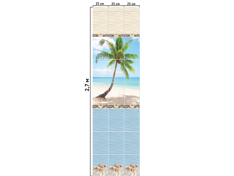 Классическая коллекция, имитирующая плитку, имеет следующие размеры кафельных секторов на одной панели 2,7мх0,25м: