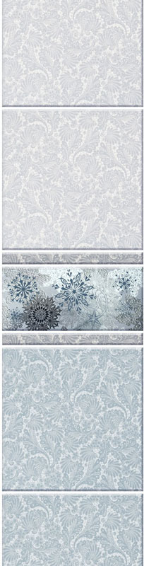 Коллекция Зимняя сказка выполнена "под плитку" и имеет пять красочных панно, на каждом из которых изображение "зимнего" животного: белый тигр, фазан, пушистая белоснежная сова, пингвины, белые медведи. Добор состоит из одной ламели. Он также обладает эффектом мерцания.